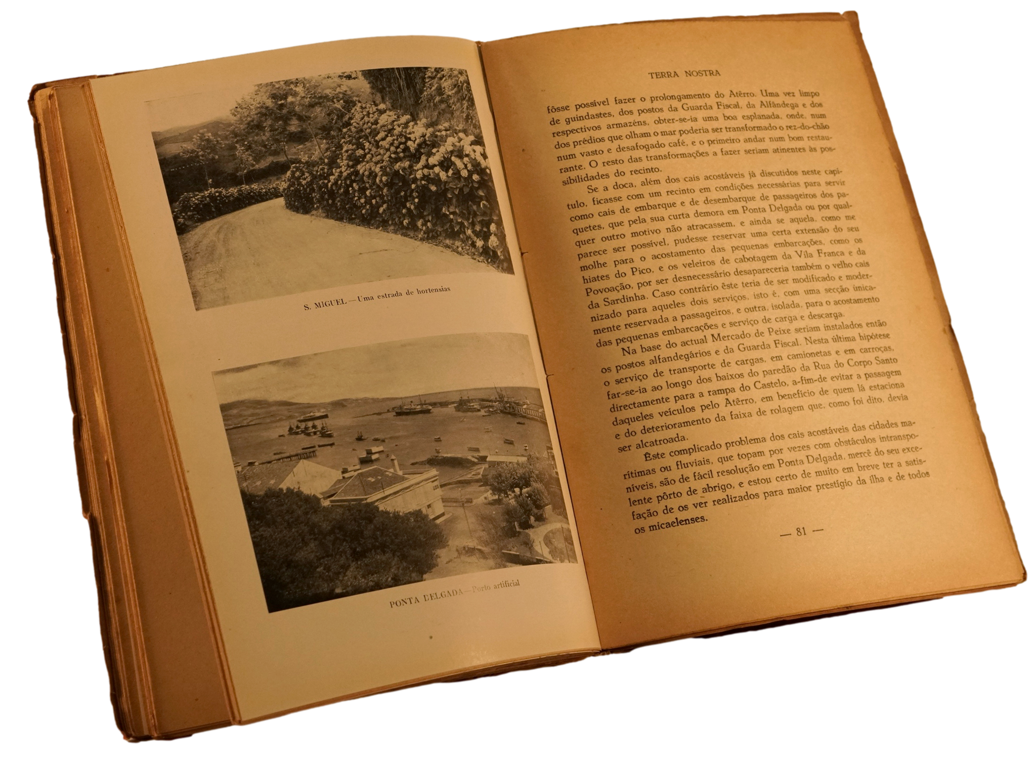 26370-L25ARRUDA (Luís de Vasconcelos).— TERRA NOSTRA. Excerptos da Ilha de São Miguel. Lisboa. 1943. (Sociedade Astória, Lda). 18,5x25,5 cm. 110-VI págs. B.