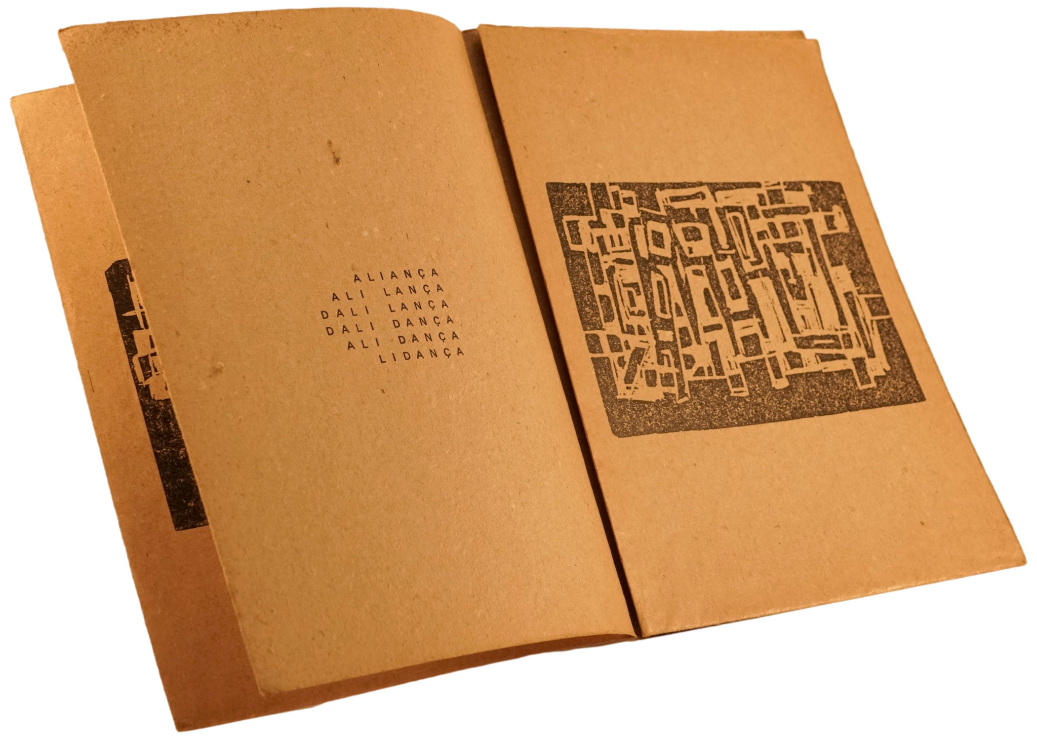 Este interessante exercício de poesia visual é constituído por uma folha de papel pardo de grandes dimensões que joga com a dobragem e desdobragem para criar os distintos efeitos poemáticos. Ilustrado com dois linóleos de Maria Augusta.