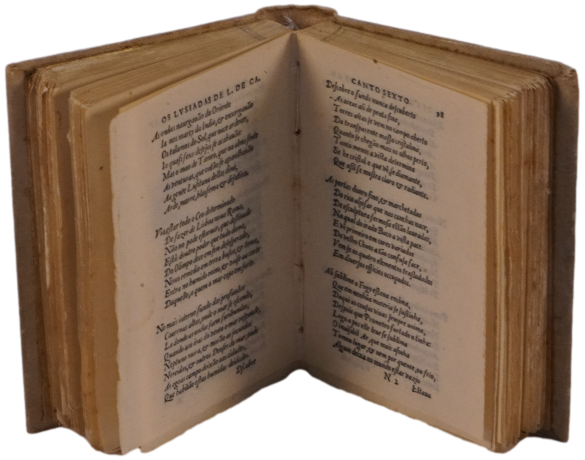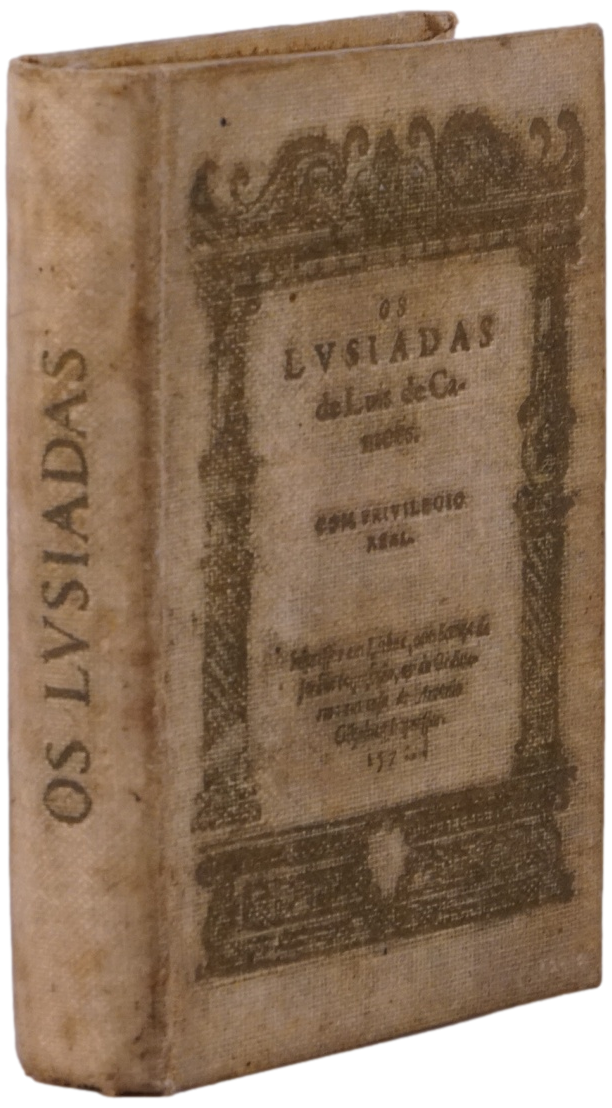 26672-L25CAMÕES (Luis de).— OS LVSIADAS. Impresso em Lisboa, com licença da Sancta Inqvisição, & do Ordinario. Em casa de Antonio Gõnçaluez Impressor. 1572. [Aliás, 1944. Impressão da Litografia Costa & Valério para a Livraria Sá da Costa Editora, Lisboa].Dim. 6x9cm. II- 186-I fls. E.