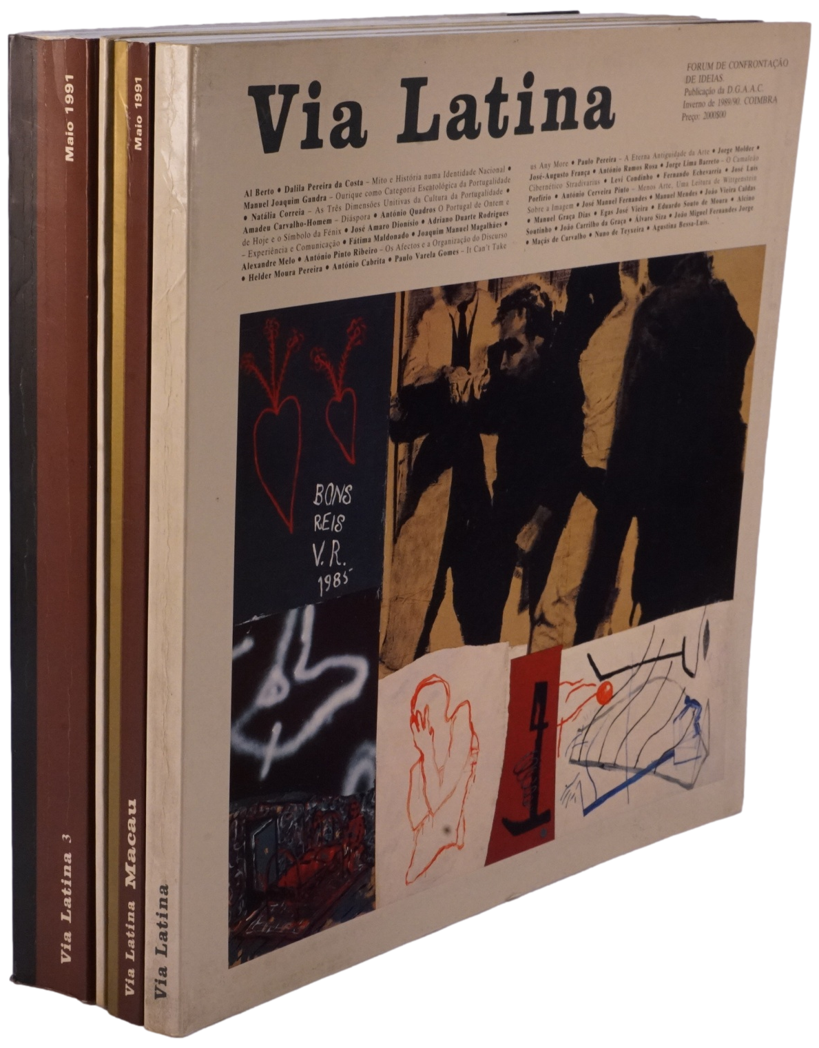 VIA LATINA. FORUM DE CONFRONTAÇÃO DE IDEIAS. — Publicação da D.G.A.A.C. Coimbra. Via Latina – Fórum de Confrontação de Ideias. 2 números de 1989/90 Inverno e Maio de 1991 cada um acompanhado de um suplemento. Coimbra. 1989-1991. 32x31,5 cm. B.