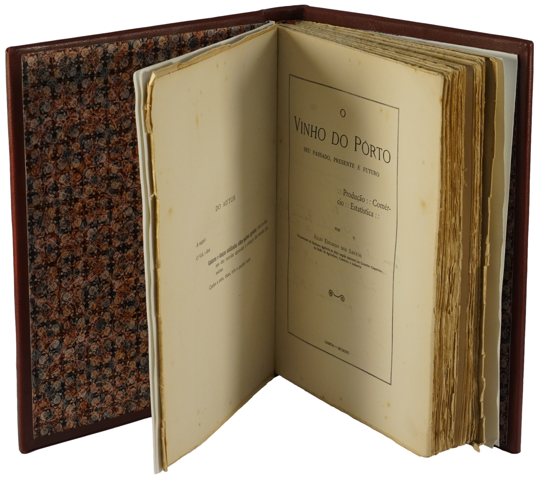 SANTOS (Júlio Eduardo dos).— O VINHO DO PÔRTO. Seu passado, presente e futuro. Produção. Comércio. Estatística. Lisboa. MCMXVI. 20x26 cm. 256-II págs. E.