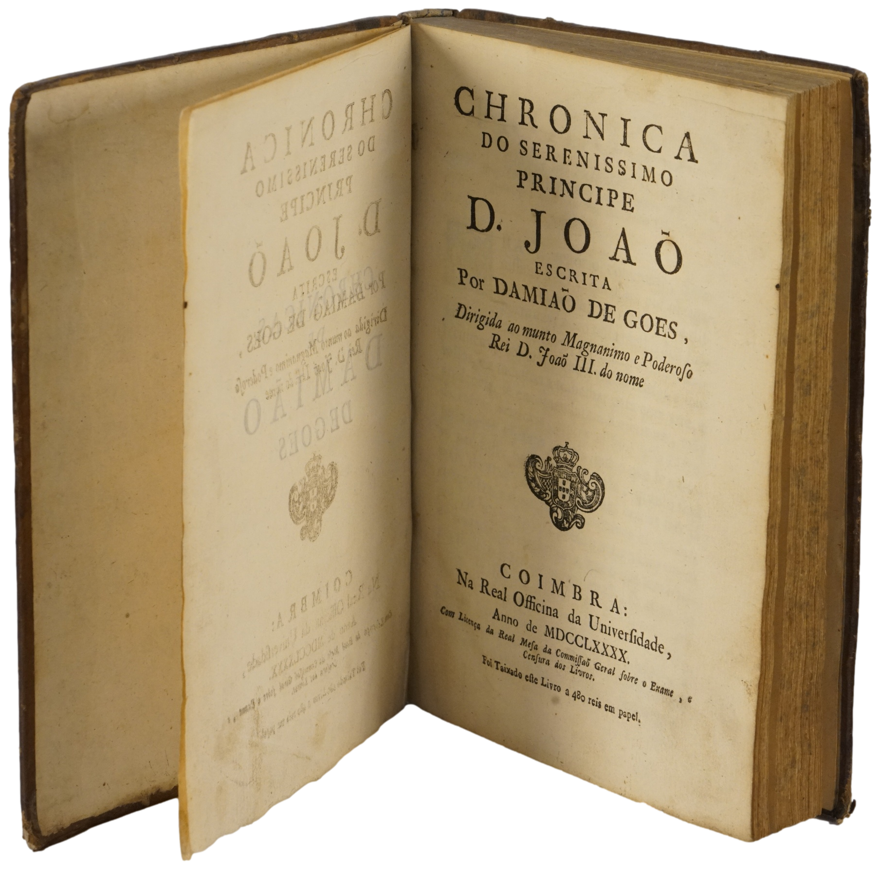 GÓIS (Damião de).— CHRONICA DO SERENISSIMO PRINCIPE D. JOAÕ escrita por Damião de Gois, Dirigida ao munto Magnanimo e Poderoso Rei D. Joaõ III. do nome. Coimbra. MDCCLXXXX.  VIII-248 págs. E.