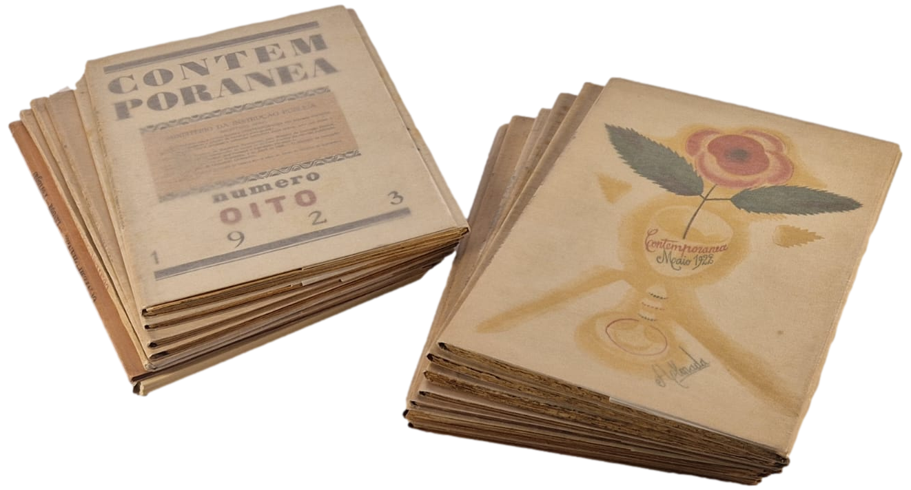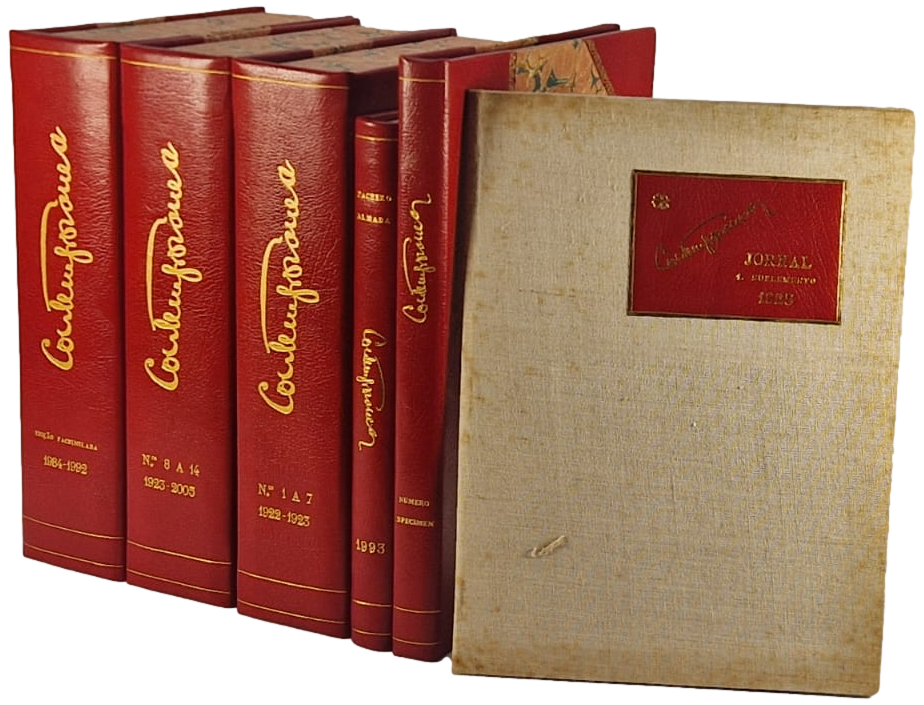 Conjunto constituído pela colecção integral desta raríssima publicação acompanhada do seu número especímen bem como da edição fac-similada editada pela editora “Contexto” bem como a obra “Pacheco, Almada e “Contemporânea” editada pelo Centro Nacional de Cultura, tudo muito bem acondicionado em estojos com lombadas e cantos em pele decorada e ouro.