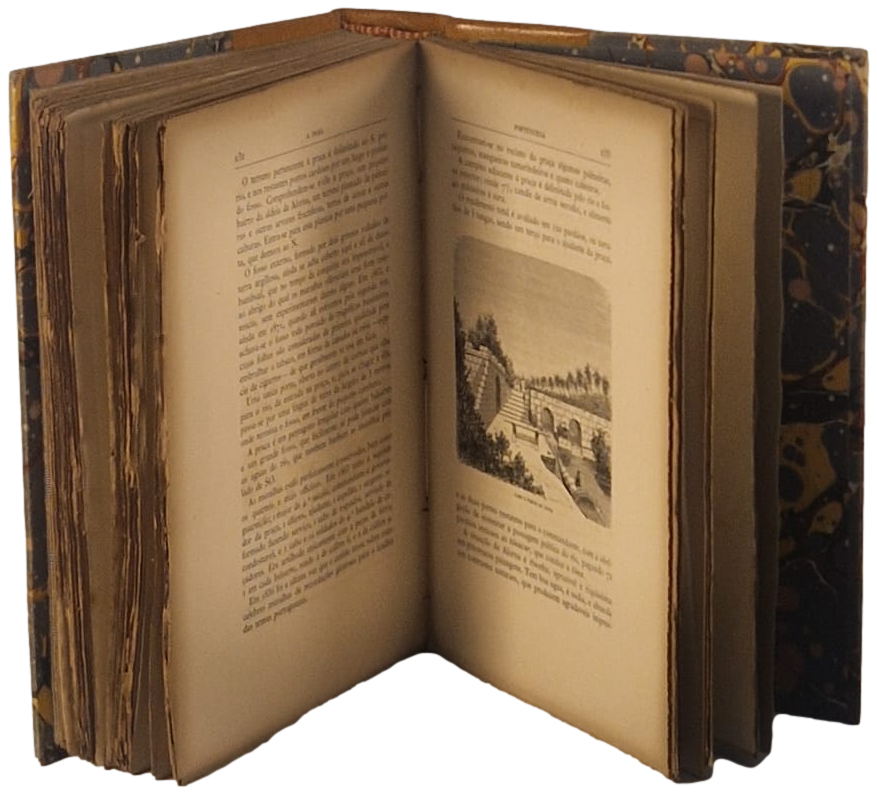 Belas encadernações de exuberante mas delicada decoração a ouro fino nas lombadas de pele natural. Excelente conservação.