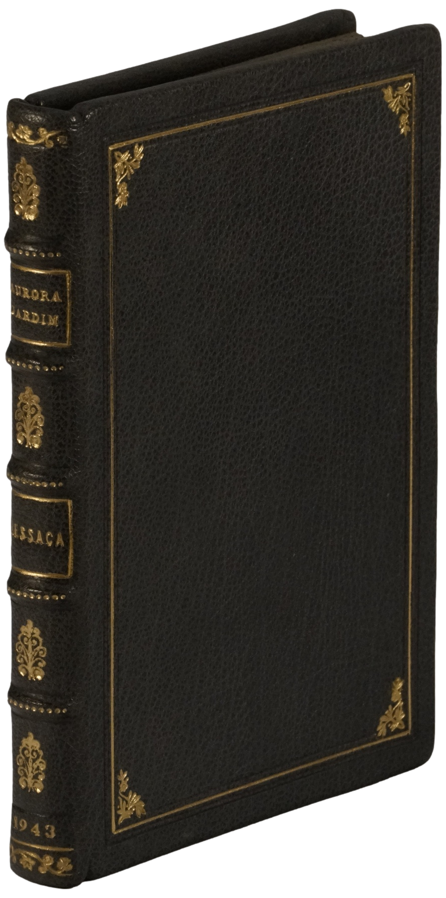 Boa encadernação inteira de “chagrin” decorada com belos ferros gravados a ouro. Capas da brochura preservadas.